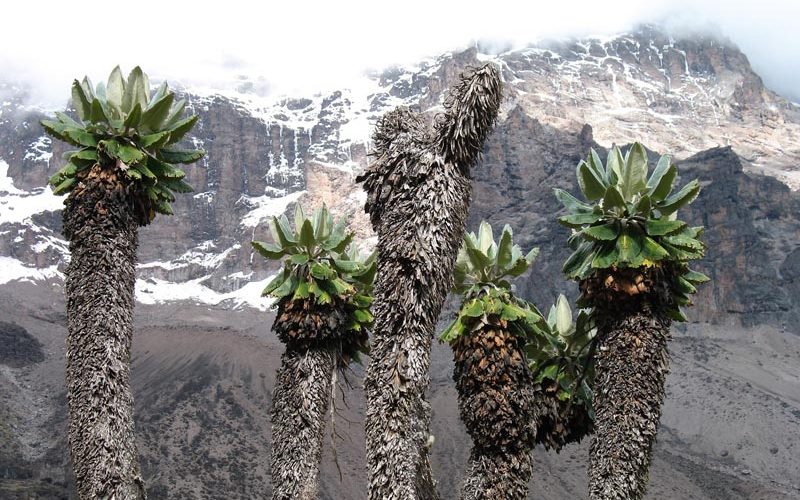 On the second day of the trek, you will be hiking across rockier terrain scarcely tiled by undergrowth and random moss-covered trees. As we begin to climb, Kilimanjaro will be in plain sight, and our path flatten as we get near Barranco Valley. From Umbwe Ridge the path, gilded with unusual but yet amazing Senecio forest, leads down to Barranco camp.