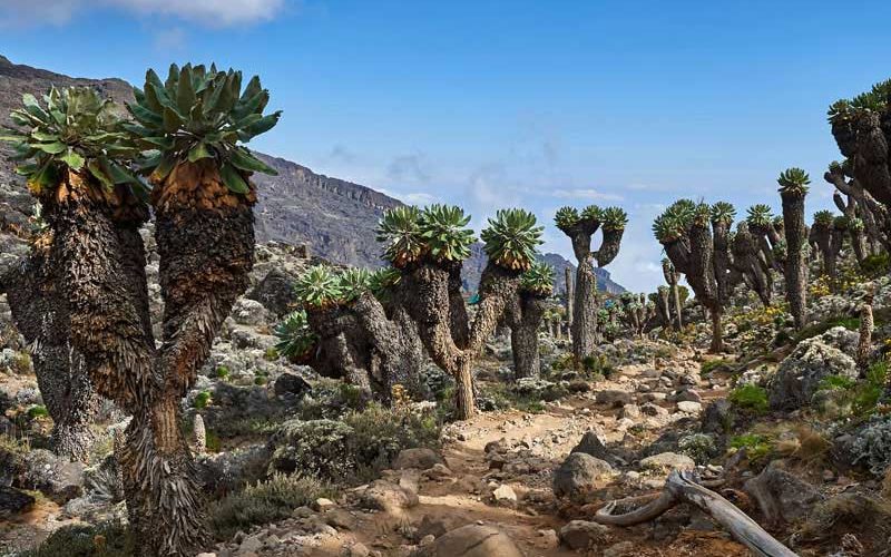 Today is a long trek heading east which passes through the ‘Garden of the Senecios’ and then enters the high alpine desert zone. The morning is spent trekking up to Lava Tower and the iconic Shark’s Tooth rock formation at 4,600 meters, where you will have lunch. After lunch you will join the northern circuit heading down to Moir Camp at 4,200 meters. This is an important day in your trek as you will get to experience high altitude and then sleep low, which is good for the acclimatisation process.