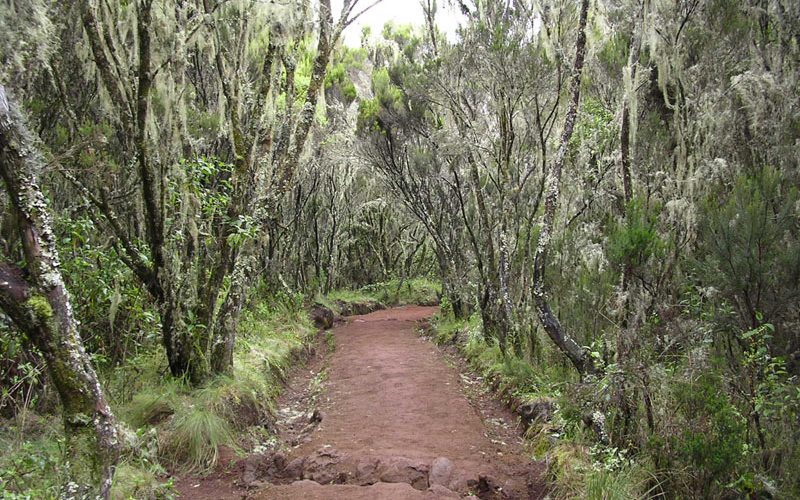 The Northern Circuit Route begins at Londorossi Gate (2,100 meters) in the West, the same start point as the Lemosho Route. The drive to Londorossi Gate takes approximately two hours from Moshi and considerably longer from Arusha. Registration with the Kilimanjaro National Park authorities occurs at the gate and then you will be driven further up the mountain to the trailhead starting point. Most tour operators serve lunch here before the short first day trek to MtiMkubwa Camp (2,820 meters) begins. You may get lucky and spot large wildlife like elephant and buffalo that sometimes emerge from the rainforest onto the path as you trek towards your first camp. Dinner will be served when you reach MtiMkubwa Camp.