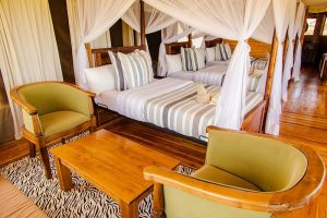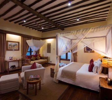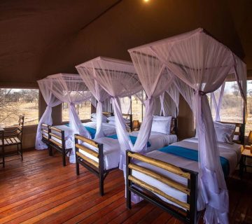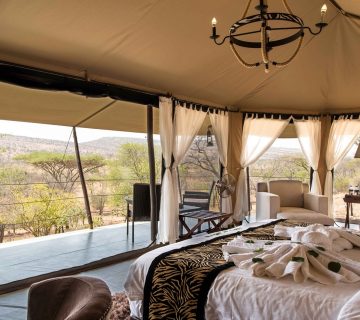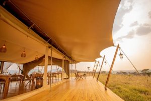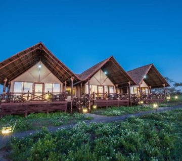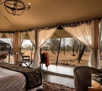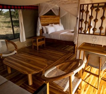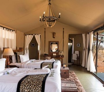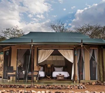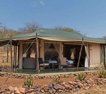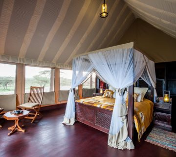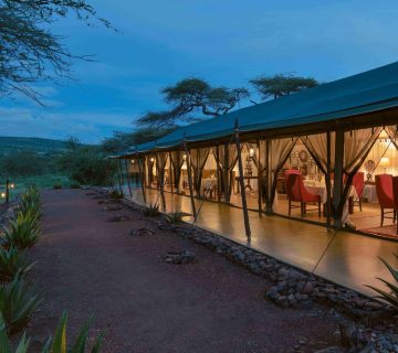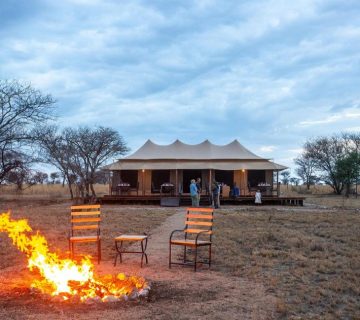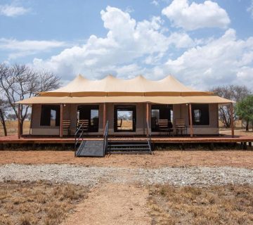 The lodge, which opened in December 2013, is Tanzania’s newest location for Ndutu and the southeast Serengeti wildlife viewing. A truly African safari experience with unique blend of nature and elegant living, lodge offers 22 guest tents with wooden floor raised a metre above the ground and set 15m from each other for solitude, all snuggling underneath palm fronds covering for shade and protection from the weather. The lodge features two suites that are especially suited for families with kids.
