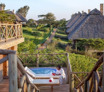 The graceful curves of this exquisitely evocative lodge transcend description, with the magnificent bird life of the spectacularly soda-encrusted and pink flamingo-fringed Lake Manyara serving as its inspiration. The breathtaking vistas of the Great Rift Valley, the rose- gold sunsets above the Mto Wa Mbu escarpment, and the incredibly rare tree-climbing Lake Manyara lions all make for unforgettable experiences.