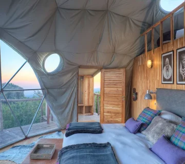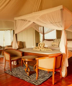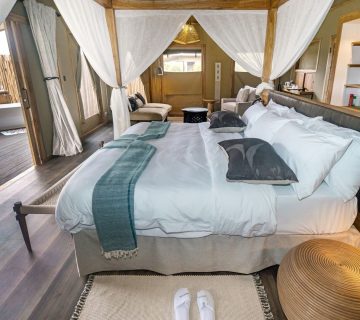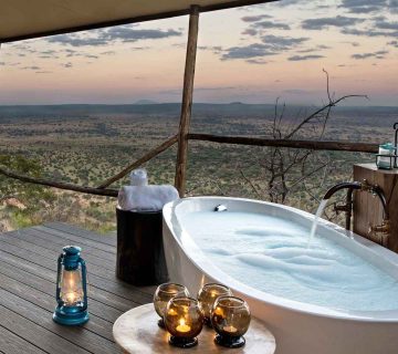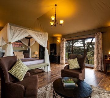 Located just 20 minutes’ drive from the crater and tucked away within the Ngorongoro Conservation Area, Acacia Ngorongoro Luxury Camp is a great place to begin exploring the crater’s many attractions and activities. Walking safaris and trips to see the well-known Maasai Tribe are two examples of these. There are just ten accommodations accessible, so visitors enjoy upscale hospitality surrounded by nearby natural and cultural attractions.