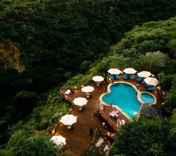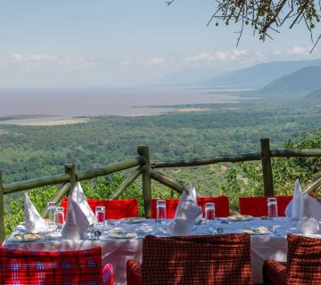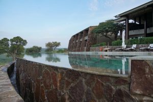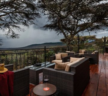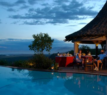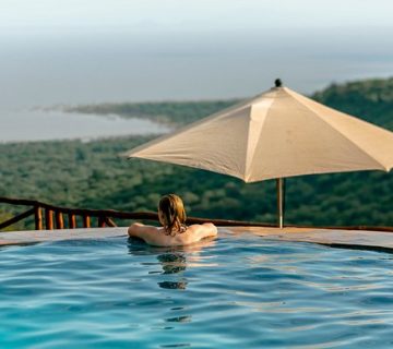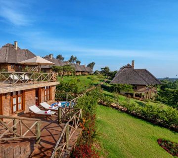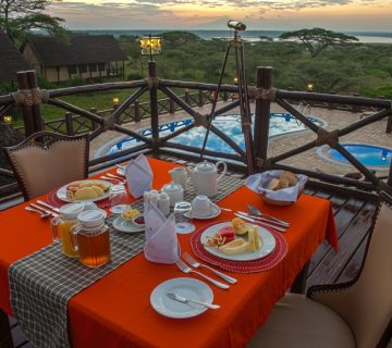 Perched high on the rim of the Great Rift Valley Escarpment Luxury Lodge is a tranquil refuge overlooking the lovely Lake Manyara below. The famous Ngorongoro Crater National Park is just 25 km away, while Tarangire National Park is 90 minutes away by car. After a few days of safari fatigue, our lodge serves as an ideal starting point and place to relax for those planning a safari in the Serengeti. Offering 16 secluded, elegantly furnished chalets, this opulent all-suite hotel offers guests breath-taking views of the scenic biosphere around Lake Manyara National Park. The main lodge area contains a distinctively built lounge bar immediately off the restaurant serving exquisitely produced cuisine. A variety of relaxing massages, in addition to a range of activities like game drives, walking safaris, and cultural tours, Bush dinners and breakfasts make this a very dreamy place to get away from the cares of everyday life! And that’s what our company motto is all about. Get Away from the World